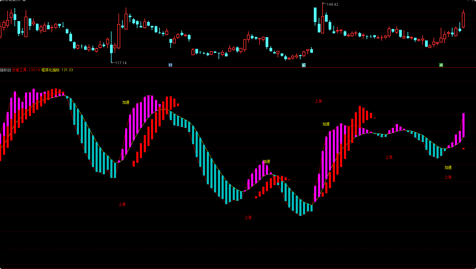 STICKLINE(炒股工具>程序化指标,程序化指标,炒股工具,2,0),COLORMAGENTA;