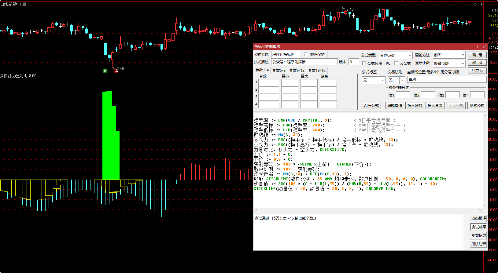 空头力 := EMA((换手高标 - 换手率) / 换手率 * 趋势线, 13);