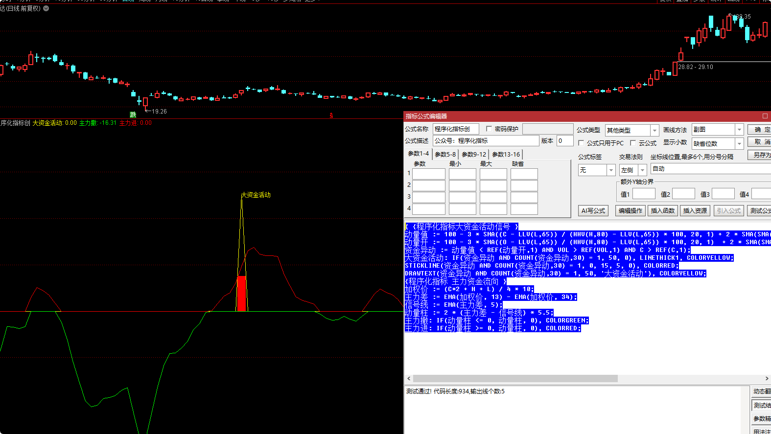 大资金活动: IF(资金异动 AND COUNT(资金异动,30) = 1, 50, 0), LINETHICK1, COLORYELLOW;
