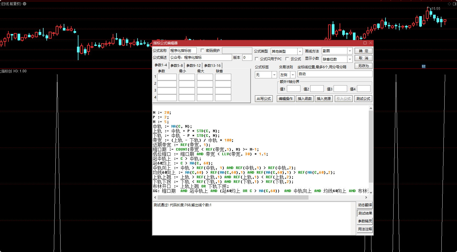 带宽 := (上轨 - 下轨) / 中轨 * 100;