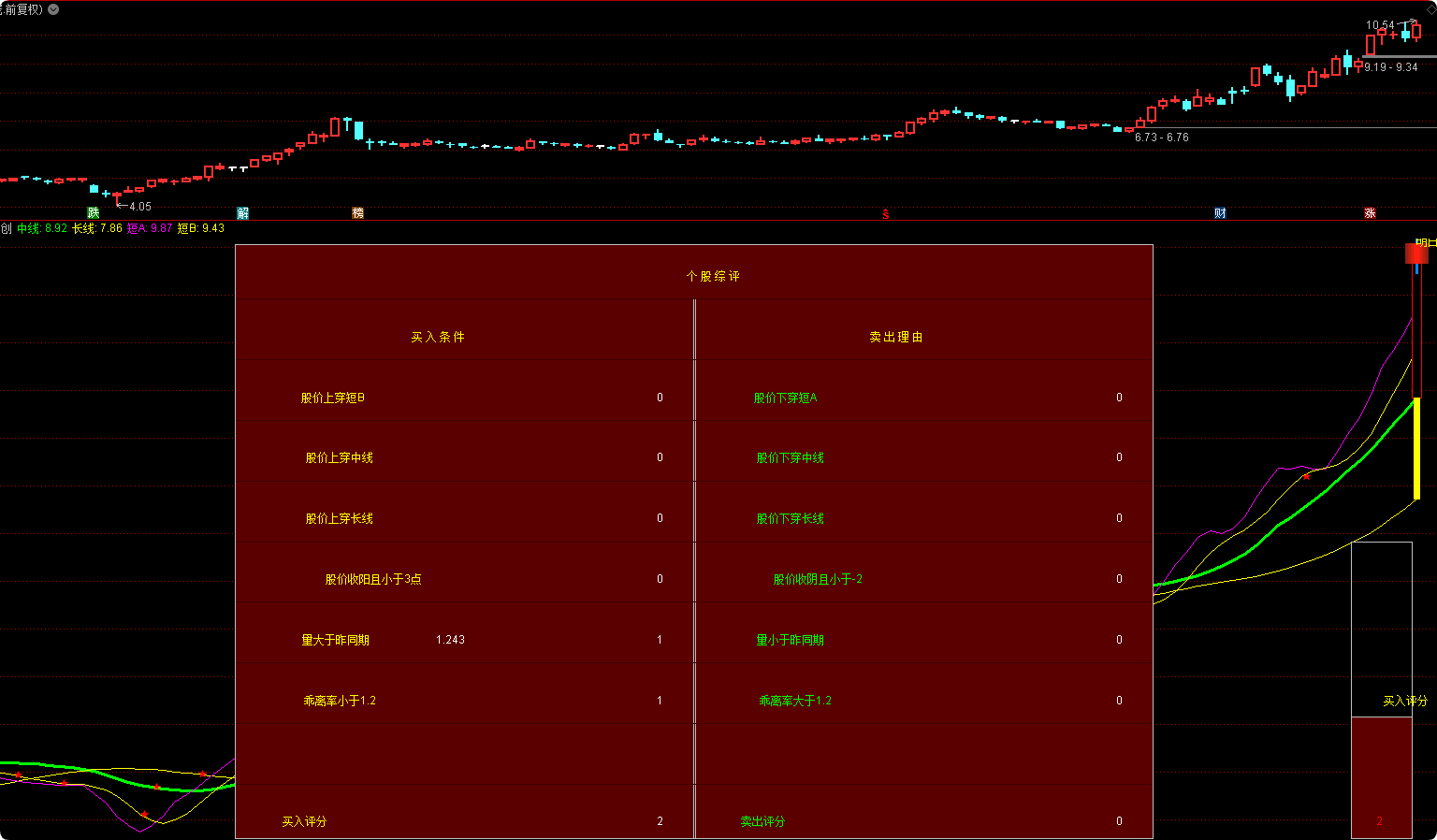 DRAWTEXT_FIX(1,0.53,0.05,1,'个 股 综 评'),COLORYELLOW;