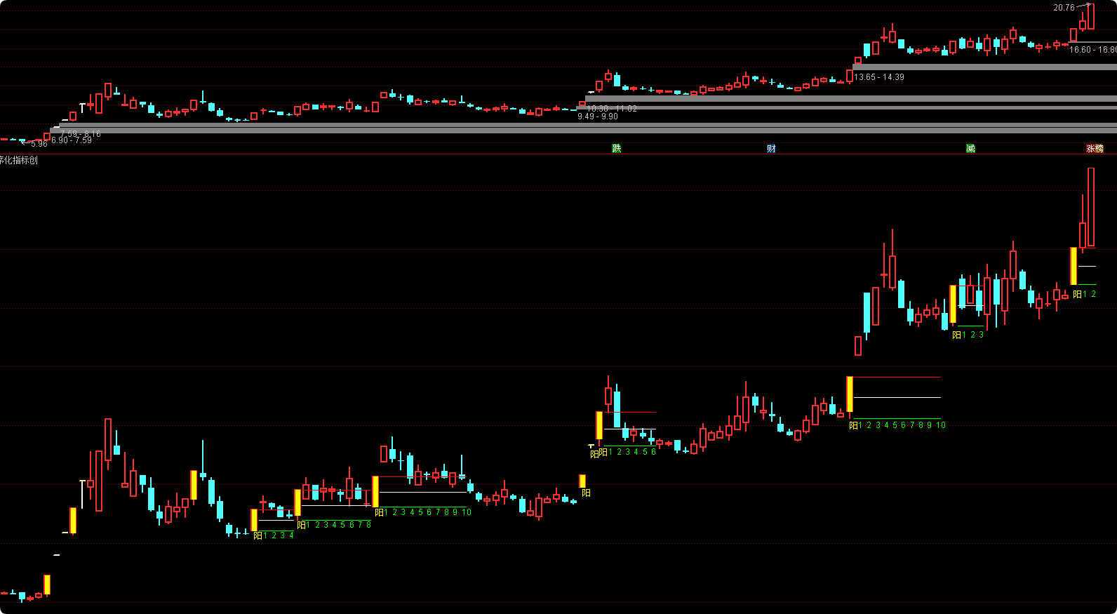 DRAWTEXT(BARSLAST(单阳)=8 AND
