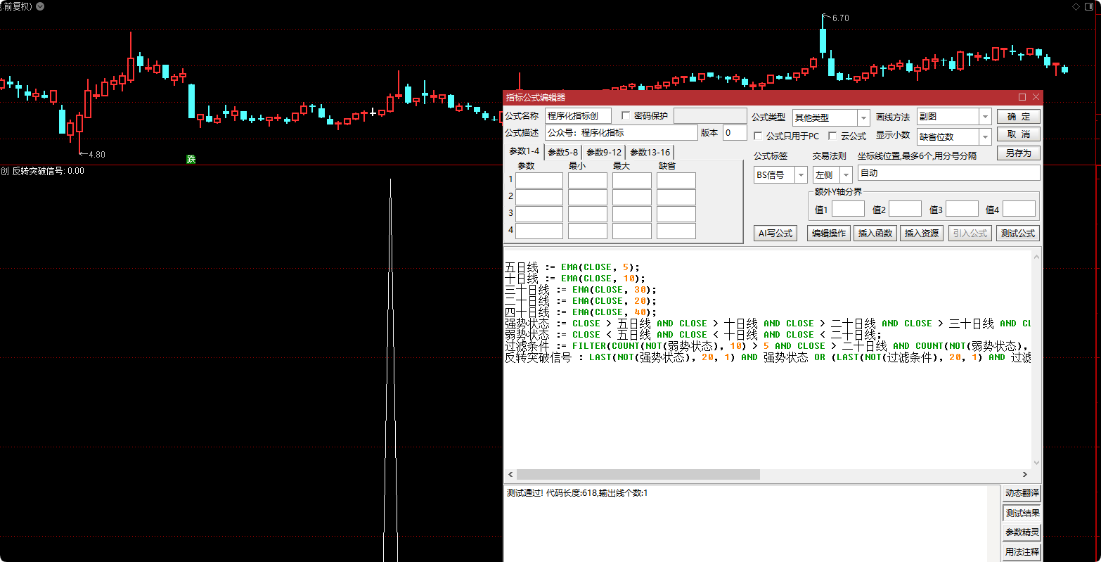 反转突破信号 : LAST(NOT(强势状态), 20, 1) AND 强势状态 OR (LAST(NOT(过滤条件), 20, 1) AND 过滤条件);