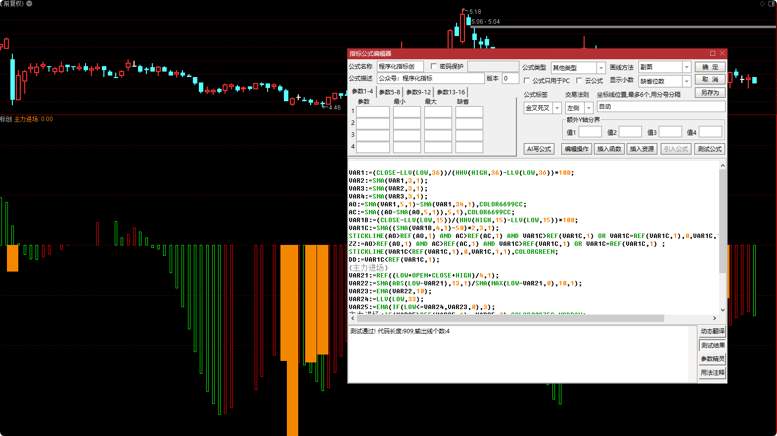 主力进场:IF(VAR25>REF(VAR25,1),-VAR25,0),COLOR0087F3,NODRAW;
