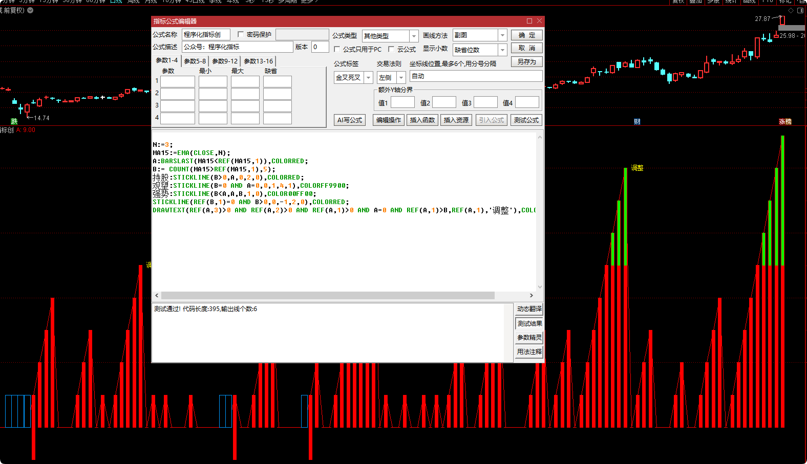 DRAWTEXT(REF(A,3)>0 AND REF(A,2)>0 AND REF(A,1)>0 AND A=0 AND REF(A,1)>B,REF(A,1),'调整'),COLORYELLOW;