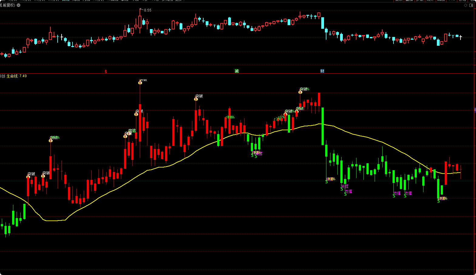 DRAWTEXT(下降趋势 AND 新低 AND C < 生命线, LOW, '支撑'), COLORMAGENTA;