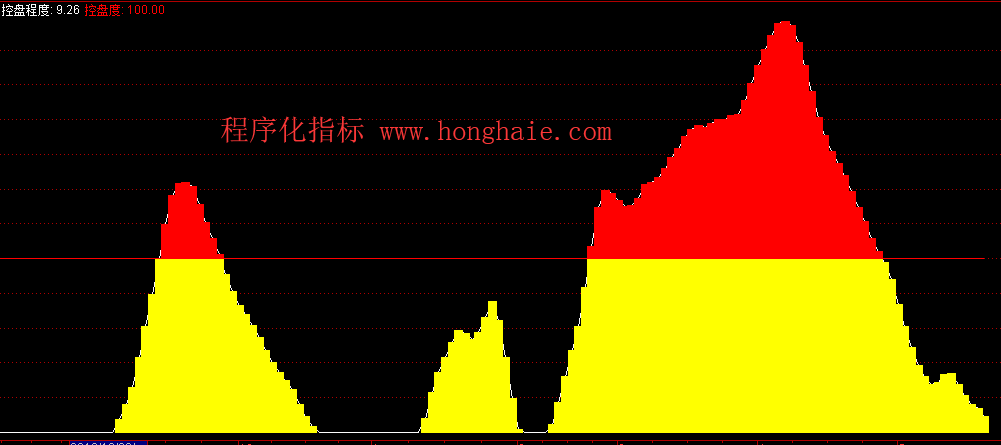 STICKLINE(控盘程度 AND 控盘程度>100,100,控盘程度,5,0),COLORRED;
