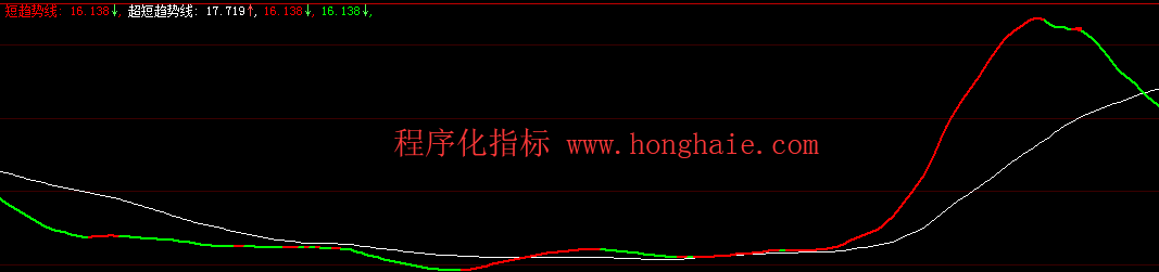 平:=IF(短趋势线=REF(短趋势线,1),短趋势线,0);{程序化指标 WWW.HONGHAIE.COM}