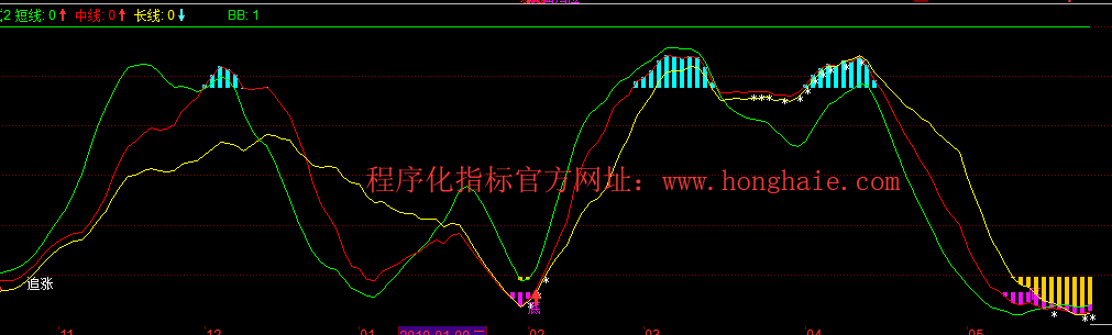 DRAWTEXT(LONGCROSS(中线,20,15),20,'追涨');//程序化指标官方网址:www.honghaie.com