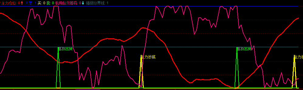 买:IF( 底部>REF(底部,1),40,0),coloryellow,LINETHICK3; DRAWTEXT(买,40,'主力抄底 '),coloryellow;