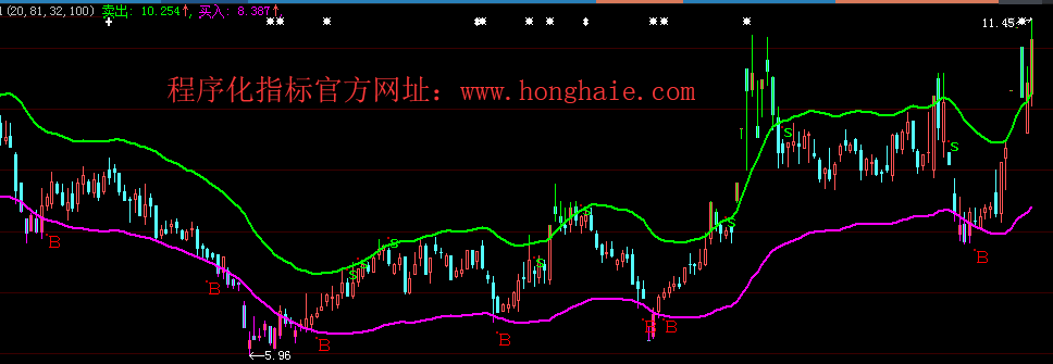 DRAWTEXT_FIX(C>O,0.01,0.9,0,' 微信公众号:程序化指标 网址:www.honghaie.com.com'),COLORRED;
