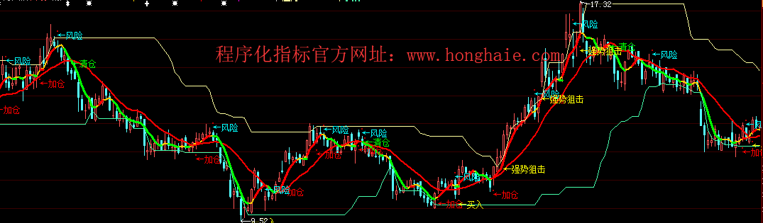 DRAWTEXT_FIX(C>O,0.01,0.9,0,' 微信公众号:程序化指标 网址:WWW.HONGHAIE.COM '),COLORRED;