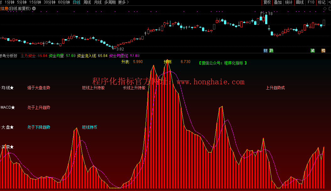 绿灯:=MFI>=REF(MFI,1)AND VOL*比>=REF(VOL,1);