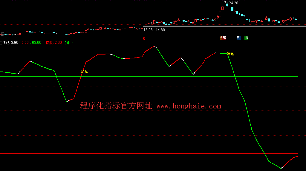 VAR1:=工作线,COLORRED;{程序化指标官方网址 WWW.HONGHAIE.COM}