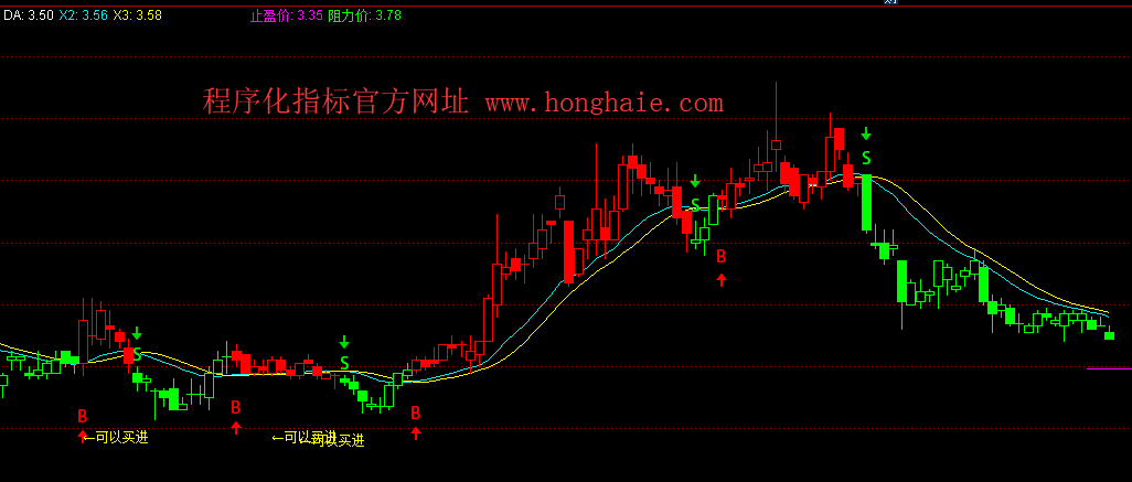 DRAWTEXT(YY1 AND YY5 AND YY3,LOW-0.2,'←可以买进'),COLORYELLOW;