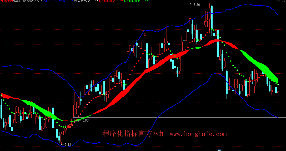 红持绿抛②:MA(CLOSE,25),COLORRED;{程序化指标官方网址 WWW.HONGHAIE.COM}