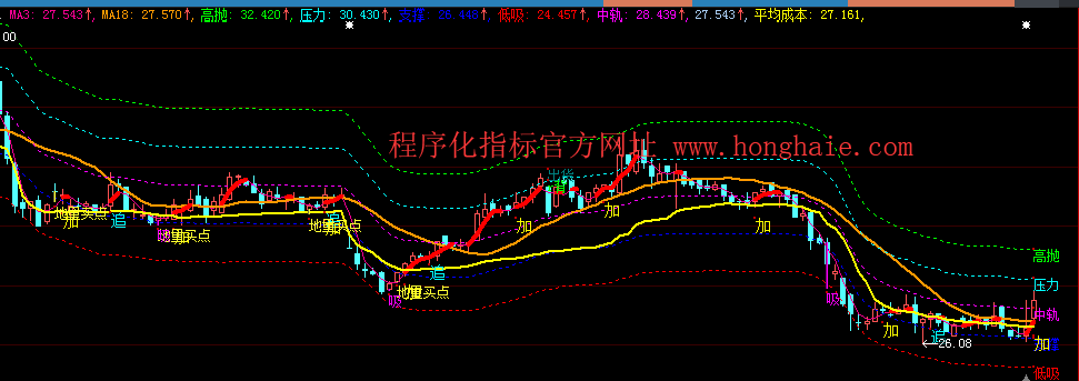 中轨:(压力+支撑)/2,dotline,colormagenta;
