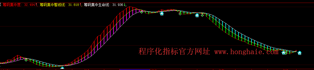 B:=CROSS(筹码集中警戒线,筹码集中度);