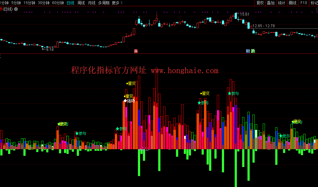 VAR8:=((VAR5 / VAR2) * VOL); {程序化指标官方网址 WWW.HONGHAIE.COM}