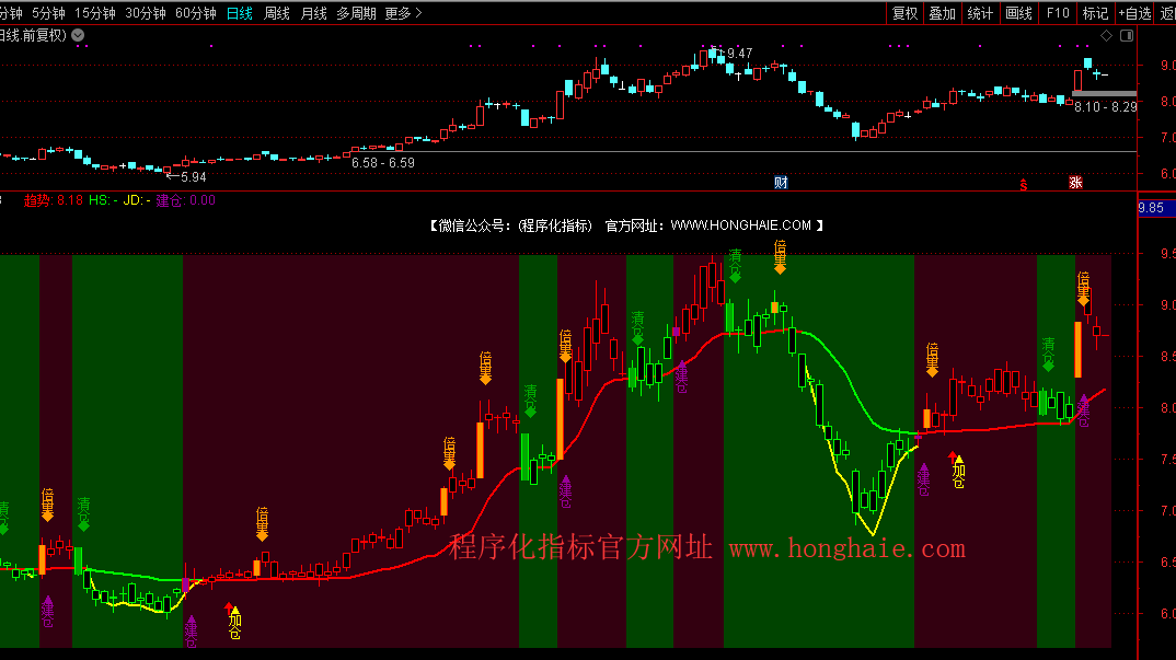 DRAWKLINE(H,O,L,C);{程序化指标官方网址 WWW.HONGHAIE.COM}