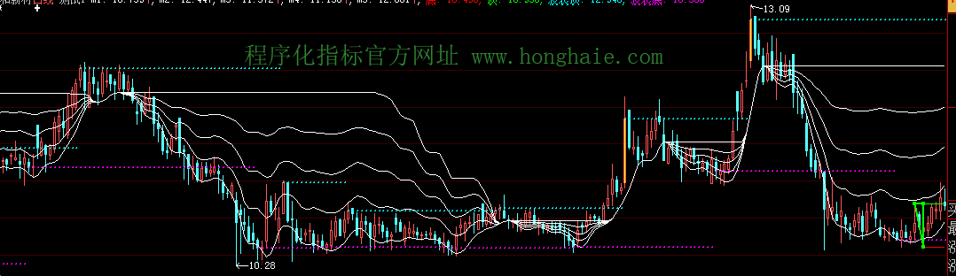 波浪顶:IF(T1309,A309,A309),COLORCYAN,POINTDOT,LINETHICK2;